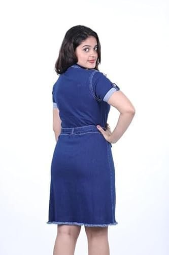 Women’s Denim A-Line Mini Dress Button Down Short Sleeve Casual Summer Shirt Dress