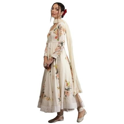 Women’s Floral Embellished Anarkali Kurta with Churidar and Dupatta Set