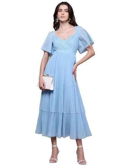 Polyester V-Neck A-Line Dress
