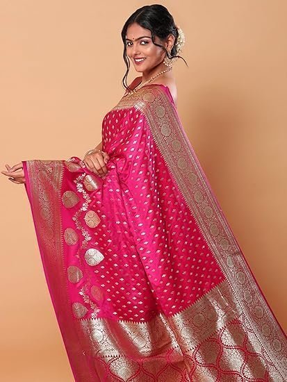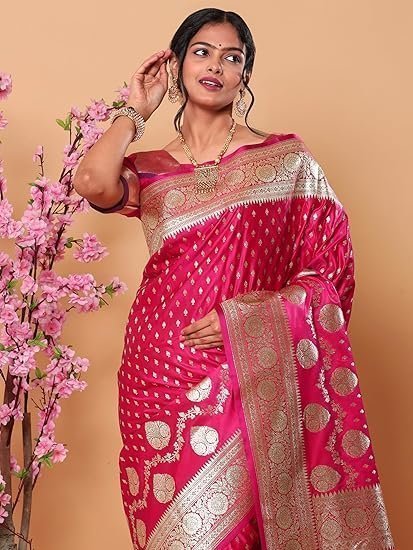 Banarasi Silk Gold Zari Saree-6.3 Mtr(Dark Pink;Golden)