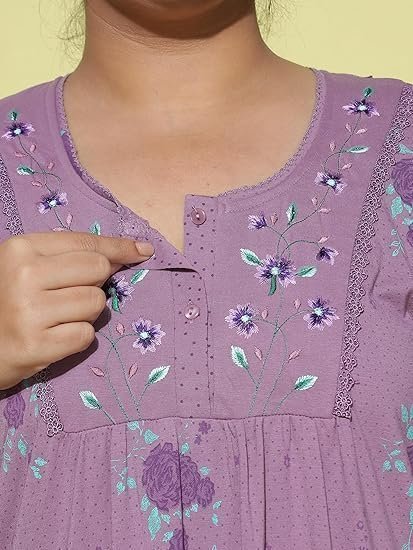 Cotton Nighty for Women | Printed Night Gown for Women with Pocket | Maxi Nighty, Comfortable Sleepwear for Daily Use