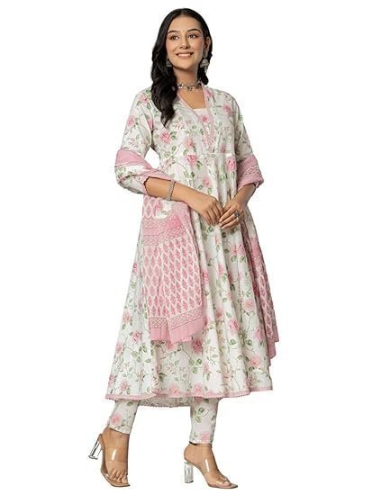 Cotton Printed Anarkali Kurta with Palazzo Pants and Dupatta