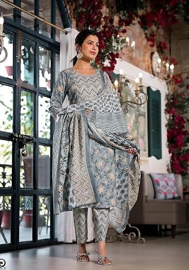 Women Cotton Blend Salwar Suit Set Fashionably Traditional, Comfortably Chic: Embrace Fashion with Our Ethnic Sets