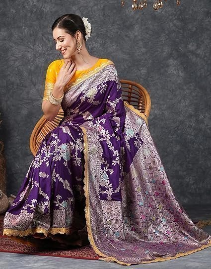 - Colour:: Saree Color: Purple | Blouse Color: Yellow, Golden