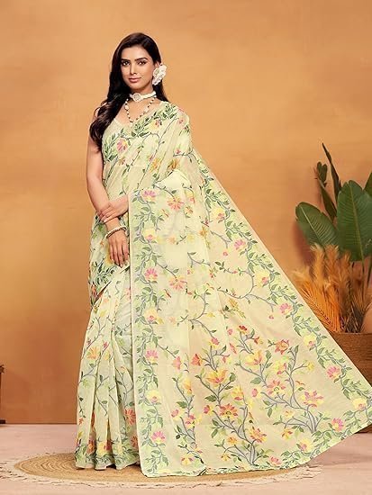 Lucknowi Chikankari Linen cotton Woven Sarees For Women with Blouse sarees for Women