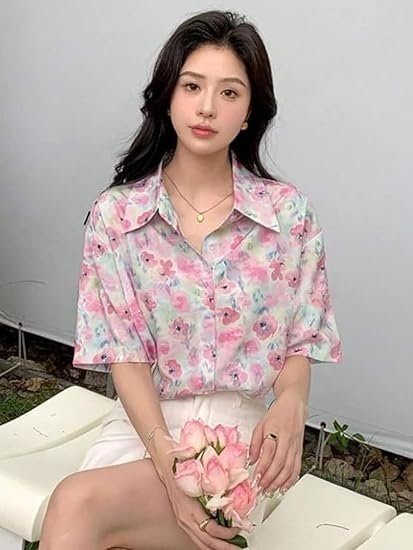 Shirt for Woman | Korean Style Half Sleeve Oversized Button Down | Tops for Women Western |Plus Size Workwear Top for Office & Casual Wear |Womens Tops