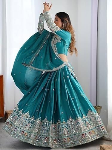 - Lehenga Waist-: 44 inch, Lehenga Length-: 44 inch, Dupatta Length-: 2 Miter Lehenga Type-: Semistiched, Dupatta Type-: Stitched, Blouse Piece-: Unstitched 1 Mtr Premium Chinon Silk Fabric ? Crafted with luxurious Chinon silk for a soft, elegant, and rich look perfect for festive and wedding occasions Heavy Embroidered Design ? Intricate thread and embroidery work all over the blouse and lehenga skirt for a premium traditional appeal Perfect for All Occasions ? Suitable for weddings, sangeet, Navratri, Diwali, festive functions, receptions, and engagement ceremonies