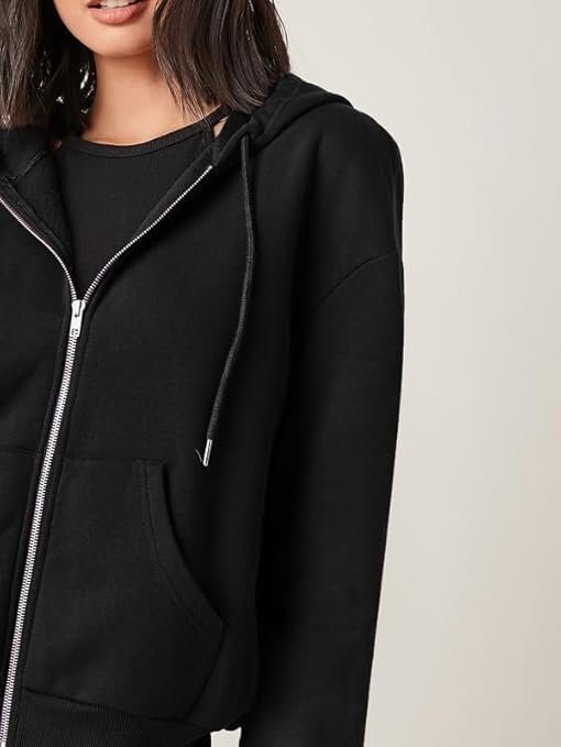 Women’s Polycotton Fleece Plain Hooded Neck Full Zipper Winter Jacket Sweatshirts Casual Hoodie with Kangaroo Pocket