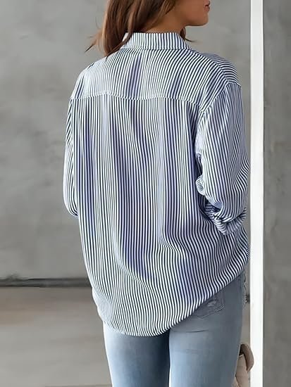 Women’s Striped Pattern Button Down Full Sleeves Blue Shirt